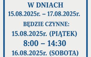 Harmonogram pracy MLM w dni świąteczne (15.08.25 – 17.08.25)