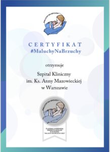 Szpital Kliniczny im. ks. Anny Mazowieckiej w Warszawie otrzymał Srebrne „Maluchy na brzuchy” za wysoki wskaźnik wsparcia dwugodzinnego i nieprzerwanego kontaktu skóra do skóry po porodzie drogami natury.