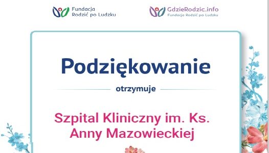 Szpital Karowa otrzymał wyjątkowy dyplom uznania przekazany przez Fundację Rodzic po Ludzku oraz por...